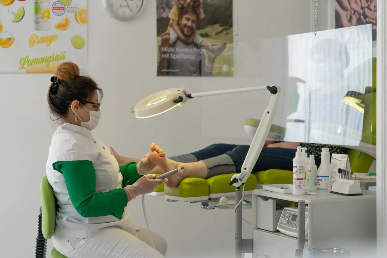 Po pierwsze, stopy są narażone na codzienny nacisk, mikrourazy, otarcia i przeciążenia. To sprawia, że łatwo dochodzi do powstawania modzeli, odcisków, pękających pięt czy wrastających paznokci. Po drugie, w obrębie stóp częściej rozwijają się infekcje – m.in. grzybica stóp, grzybica paznokci czy zakażenia bakteryjne. Co więcej, podolog zajmuje się również doborem odpowiedniego obuwia i wkładek, tapingiem podologicznym oraz protetyką paznokcia, co ma kluczowe znaczenie dla pacjentów z deformacjami, np. haluksami czy palcami młotkowatymi.